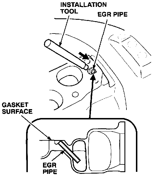 13. Use the installation tool and a small hammer to drive the EGR pipe into the port until it is flush with the port. Make sure the pipe will not contact the gasket after installation.