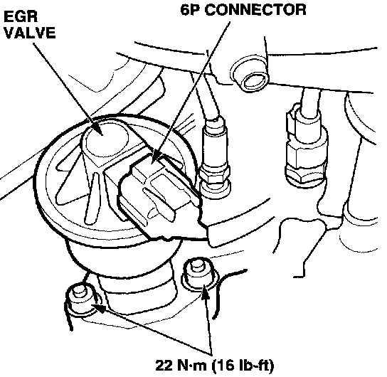 17. Install the new EGR valve with a new gasket. Torque the mounting nuts to 22 N.m (16 lb-ft). Reconnect the 6P connector.