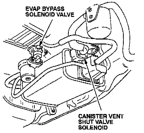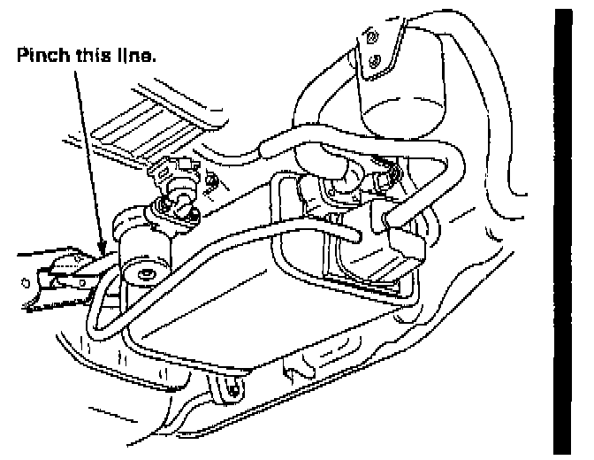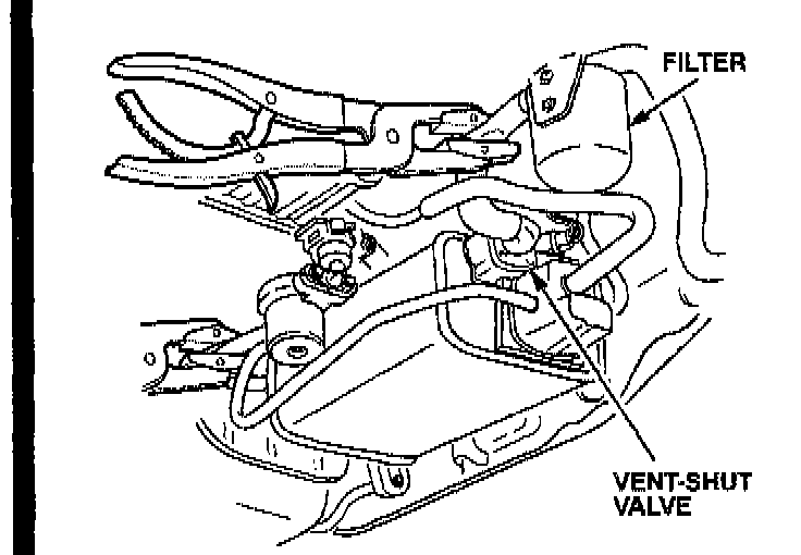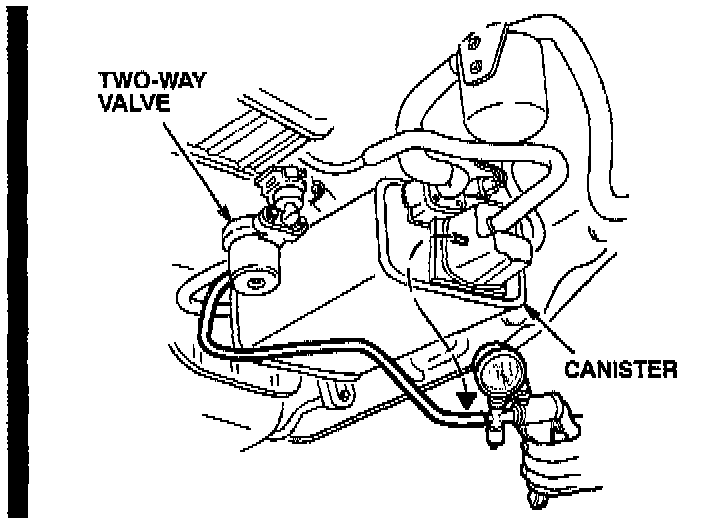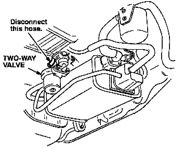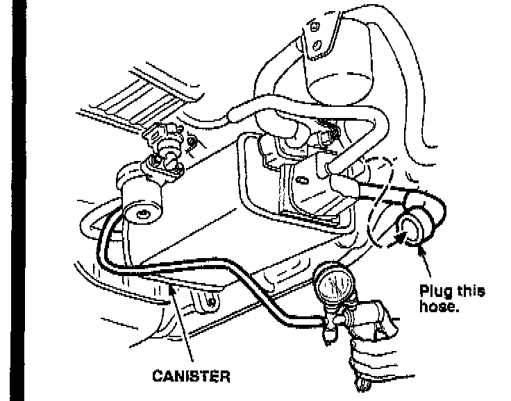 14. With the vacuum pump still connected to the purge control solenoid, disconnect the hose between the ORVR valve and the canister at the canister, then plug the canister.