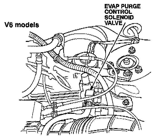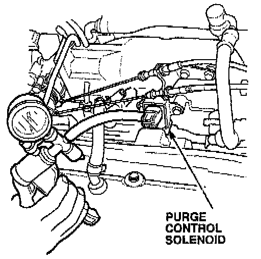 15. Remove the vacuum pump from the purge control solenoid, and reconnect the hose.