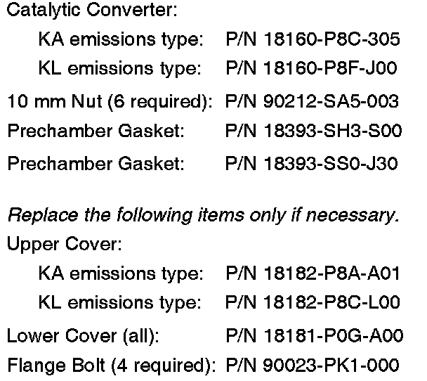 2. Replace the catalytic converter. If the mounting bolts do not break due to corrosion when you remove the original upper and lower covers, then reuse the covers. Otherwise, replace the covers and the mounting bolts.