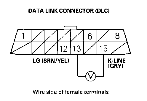 5. Measure voltage between DLC terminals No.13 and No.15.
