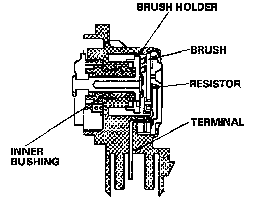 The TP sensor is a potentiometer connected to the throttle valve shaft. As the throttle position changes, the sensor varies the signal voltage to the PCM. The TP sensor is not replaceable apart from the throttle body.