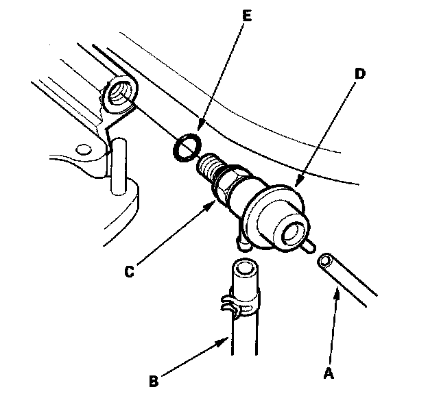 4. Loosen the locking nut (C), and remove the fuel pressure regulator (D).