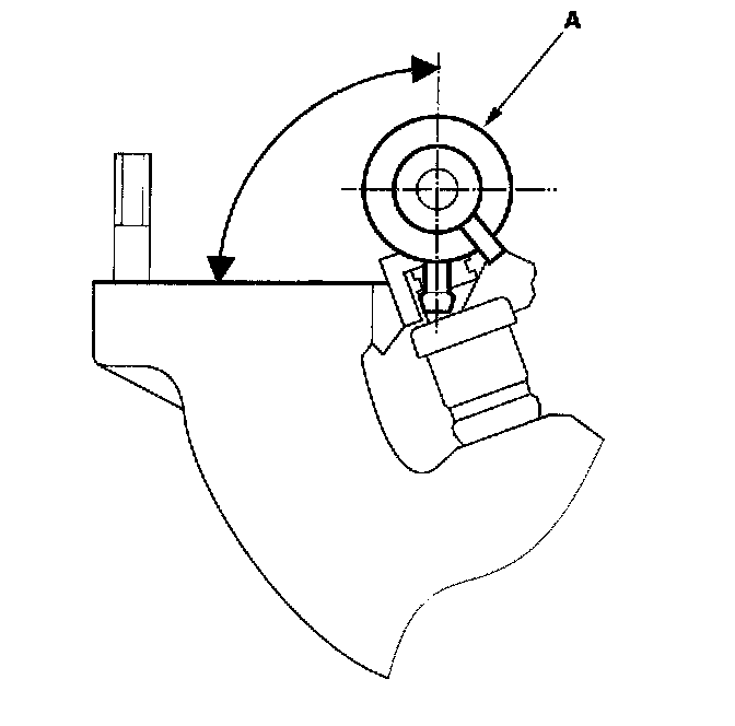 7. Turn the fuel pressure regulator (A) counterclockwise to set the angle as shown.