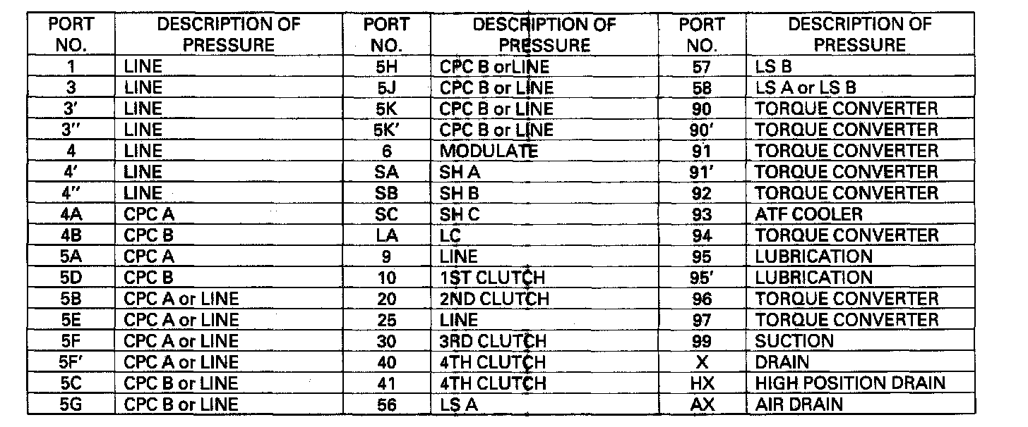 Hydraulic pressure at the ports is as follows: