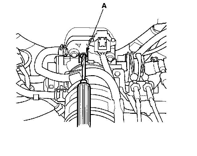 5. Adjust the idle speed, if necessary, by turning the idle adjusting screw (A) 1/4-turn clockwise or counterclockwise.