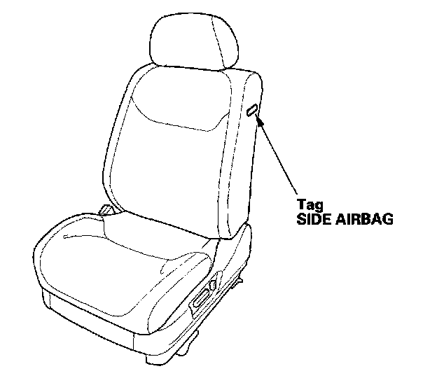 Seats with Side AirbagsSeats with side airbag have a "SIDE AIRBAG" tag on the seat-back. Because the component parts (seat-back cover, cushion, etc.) of seats with and without airbags are different, make sure you install only the correct replacement parts.
