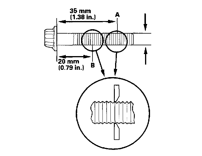 1. Measure the diameter of each connecting rod bolt at point A and point B.
