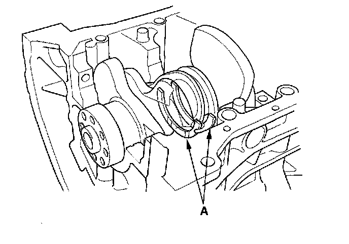 17. Line up the mark (A) on the connecting rod and cap, then install the cap.