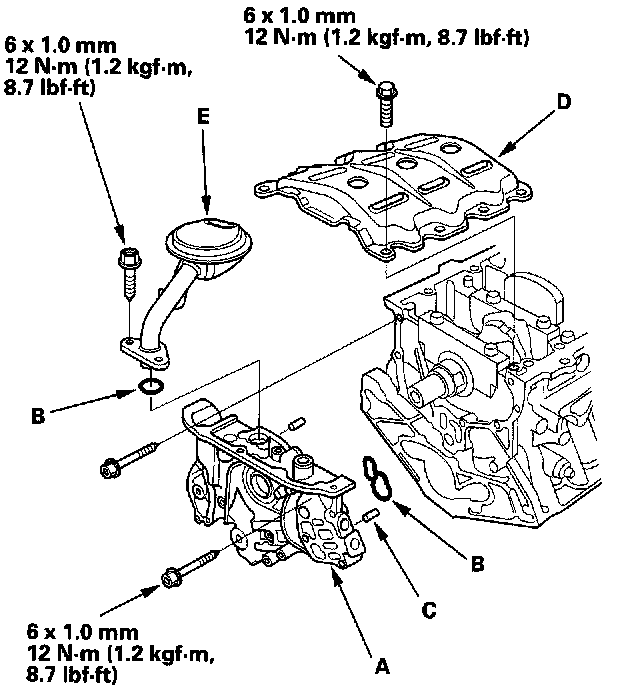 NOTE: Do not install the parts if 5 minutes or morehave elapsed since applying the liquid gasket. Instead, reapply liquid gasket after removing the old residue.
