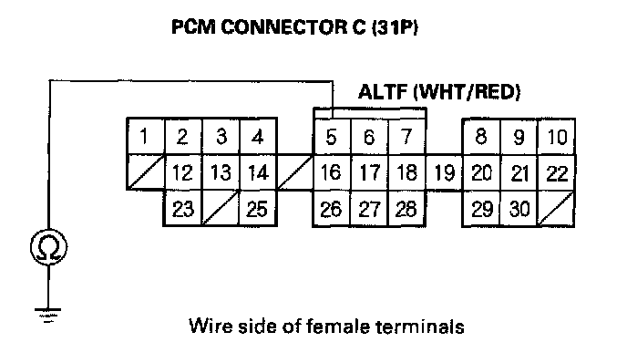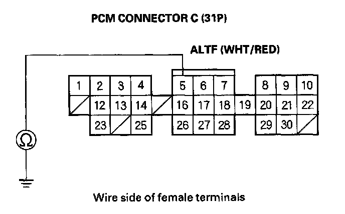 17. Check for continuity between body ground and PCM connector terminal C5.