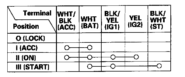 6. If the continuity checks do not agree with the table, replace the ignition switch.