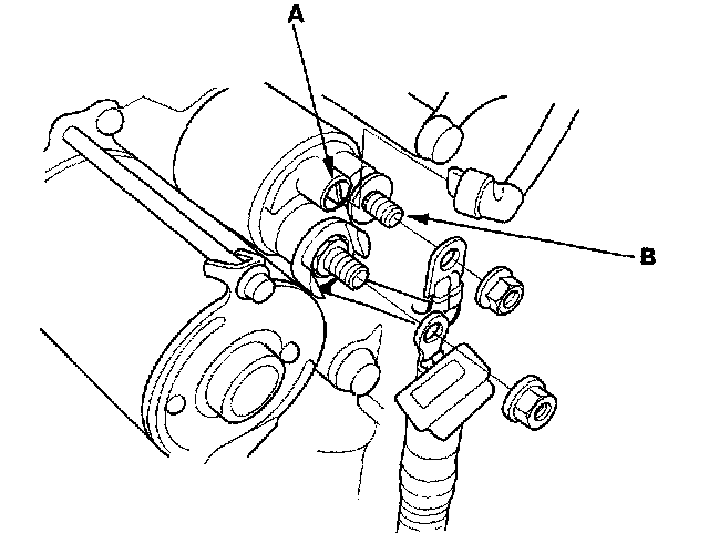 2. Check the pull-in coil for continuity between the S terminal (A) and M terminal (B). There should be continuity.