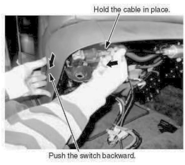 6. Insert and hold the cable into the outer rail connector. If the cable does not engage completely, quickly push the slide switch backward so the cable drops into the seat transmission.