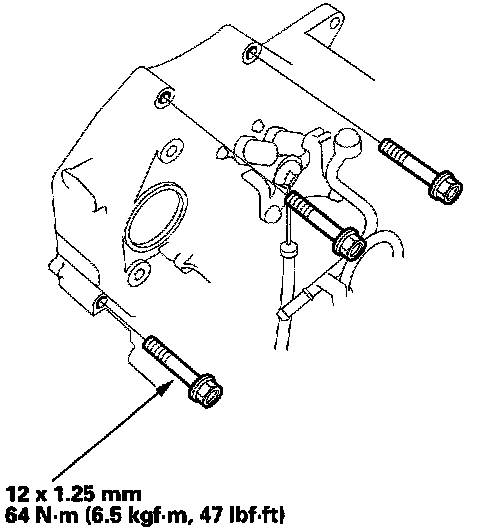 7. Install the transmission housing mounting bolts.