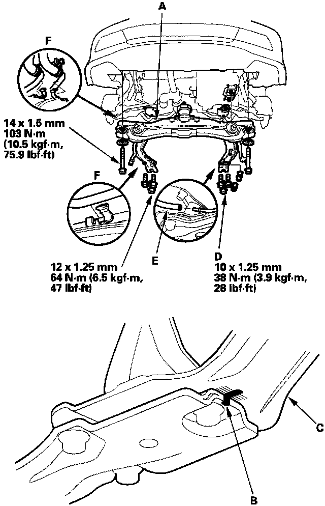 21. Install the transmission lower mount nuts (D).
