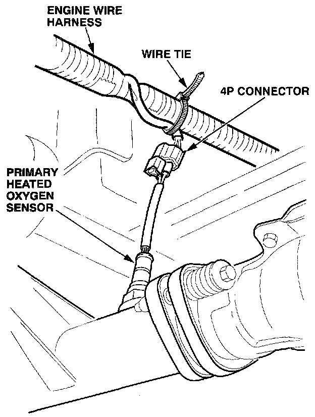 4. Replace the engine wire harness and the primary heated oxygen sensor (H025). Make sure all the connections are secure. Refer to the 2000 Integra Service Manual Supplement and to the 2000 or 2001 Integra Electrical Troubleshooting Manual for details.