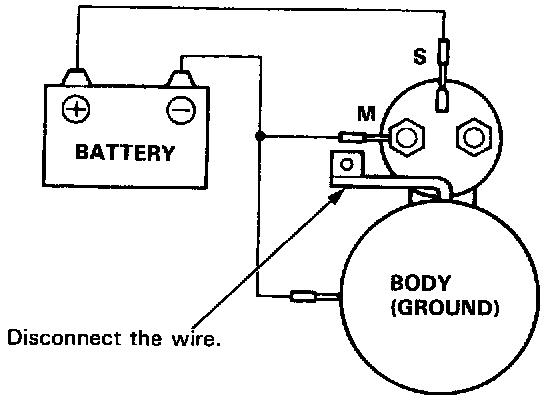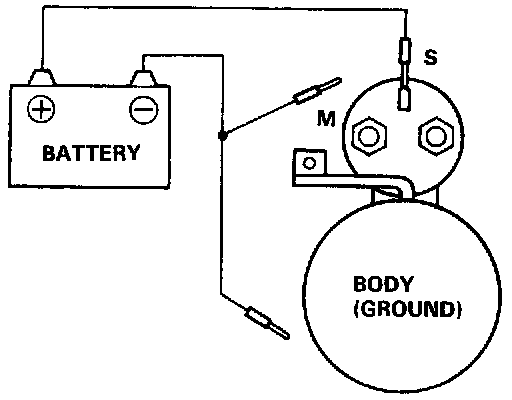 NOTE: Before starting the following checks, disconnect the wire from terminal M, and make a connection as described below using as heavy a wire as possible (preferably equivalent to the wire used for the car).