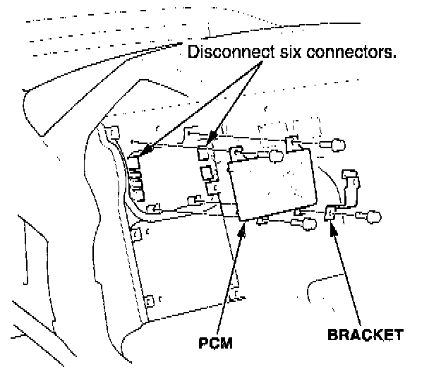 5. Disconnect the six connectors from the PCM.