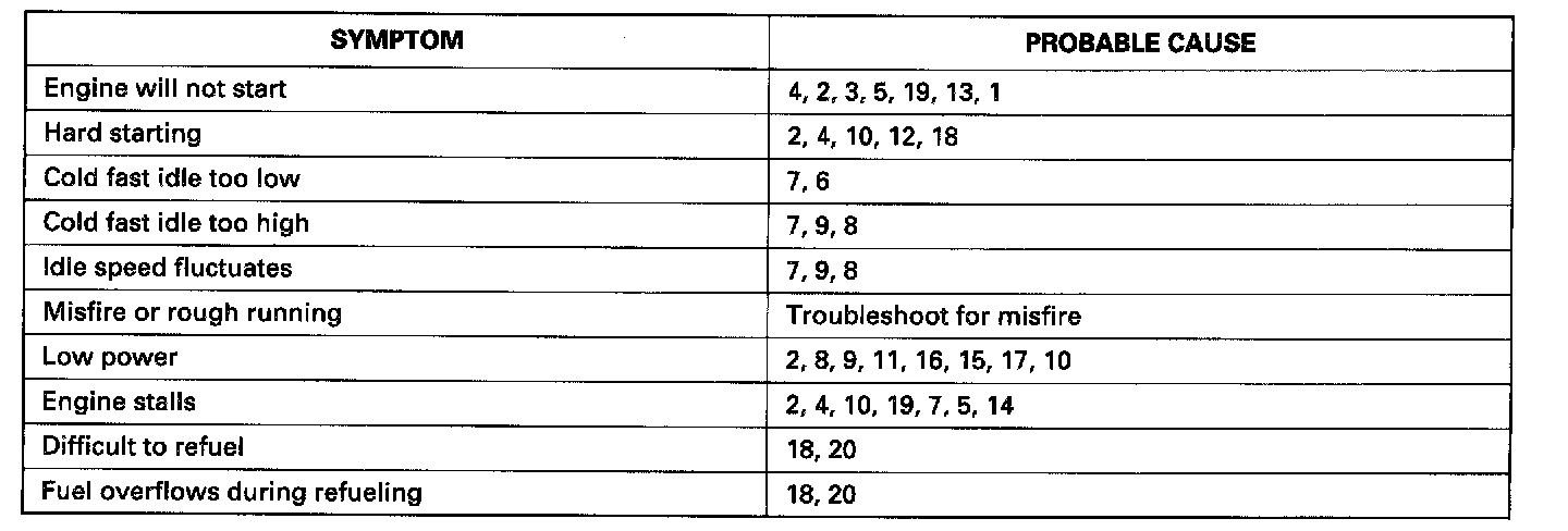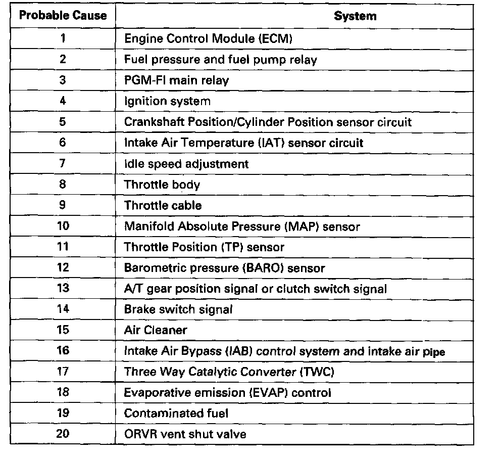 Listed in the table are symptoms and probable causes for problems that do not cause the Malfunction Indicator Lamp (MIL) to come on. If the MIL was reported on, check for DTCs.