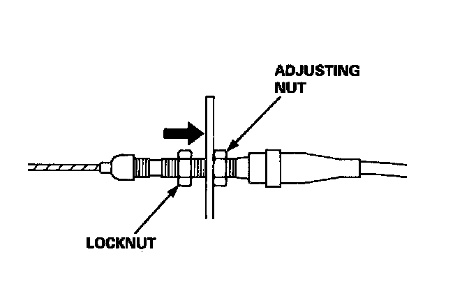 5. Pull the cable so that the adjusting nut touches the bracket, and tighten the locknut.