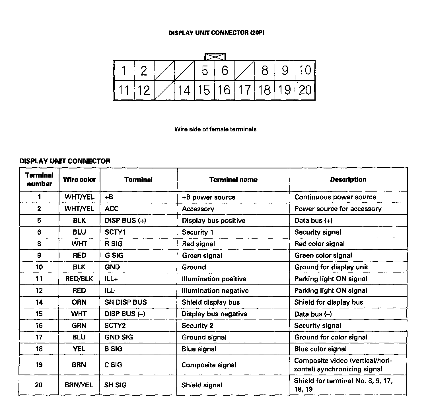 Display Unit Connector (20P):