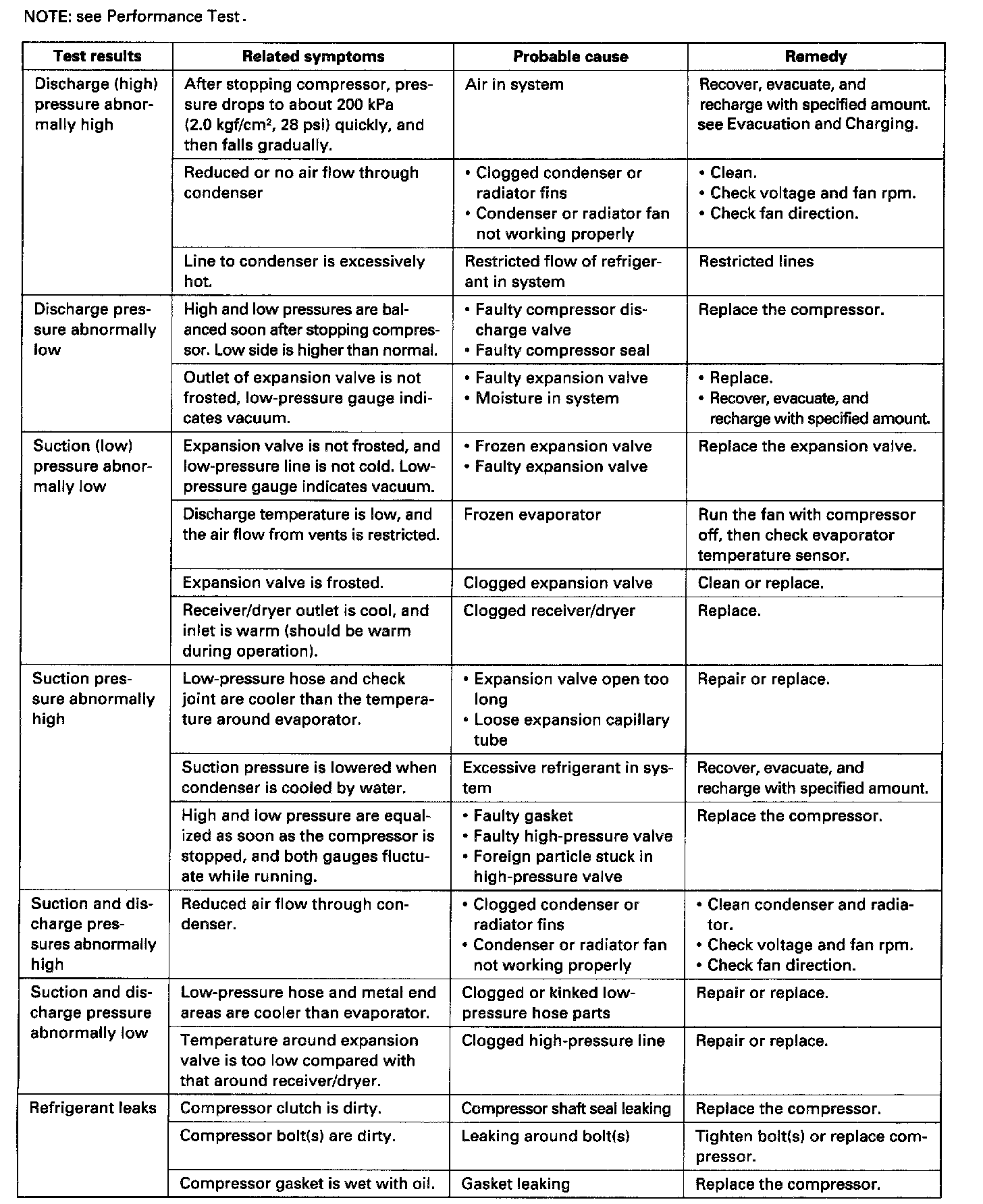 A/C System Service - Pressures Test Chart: