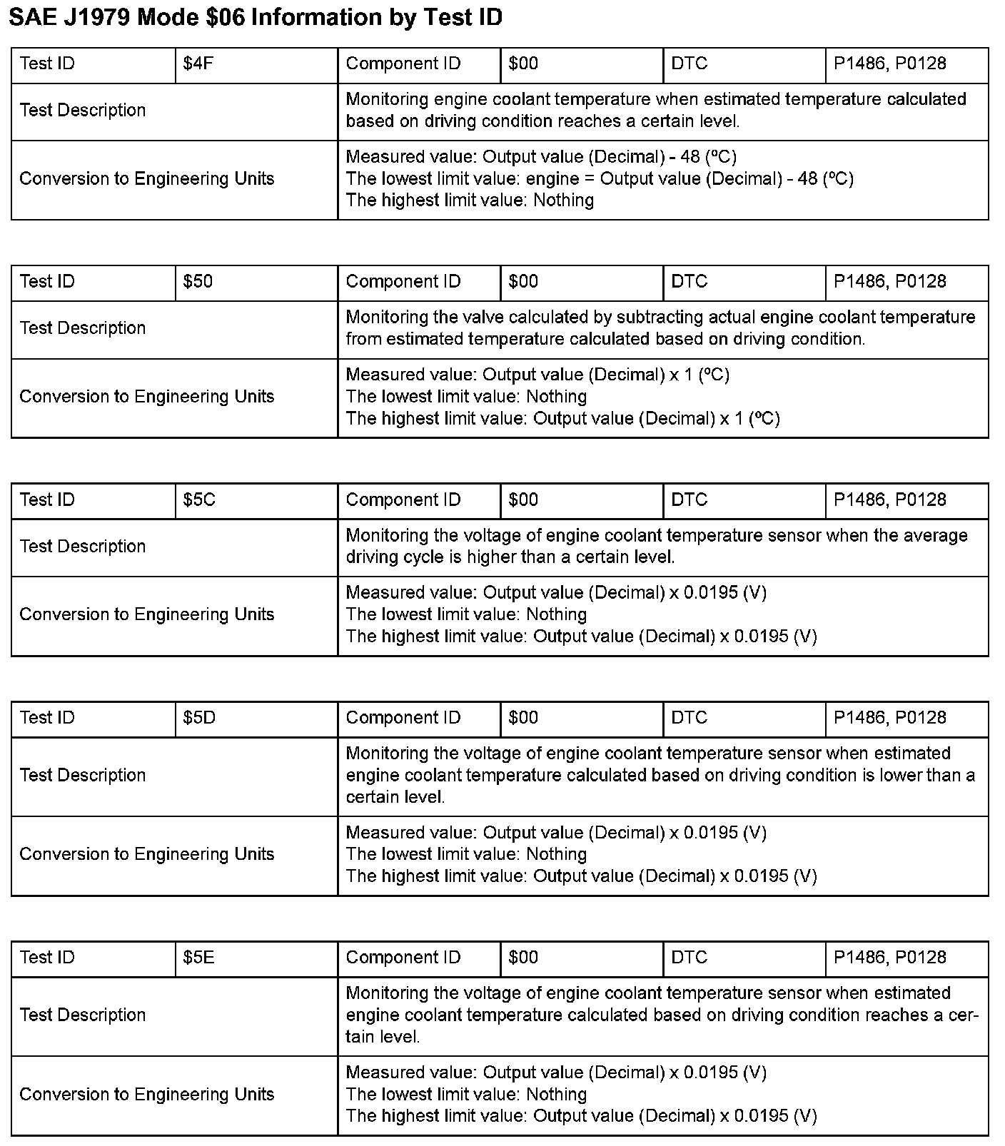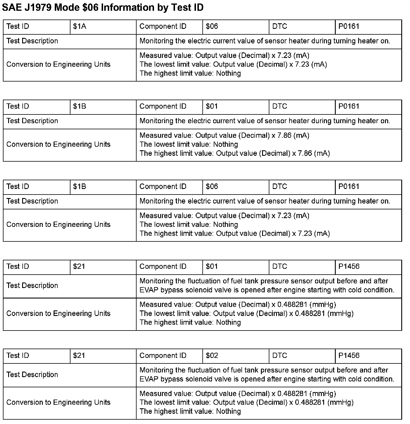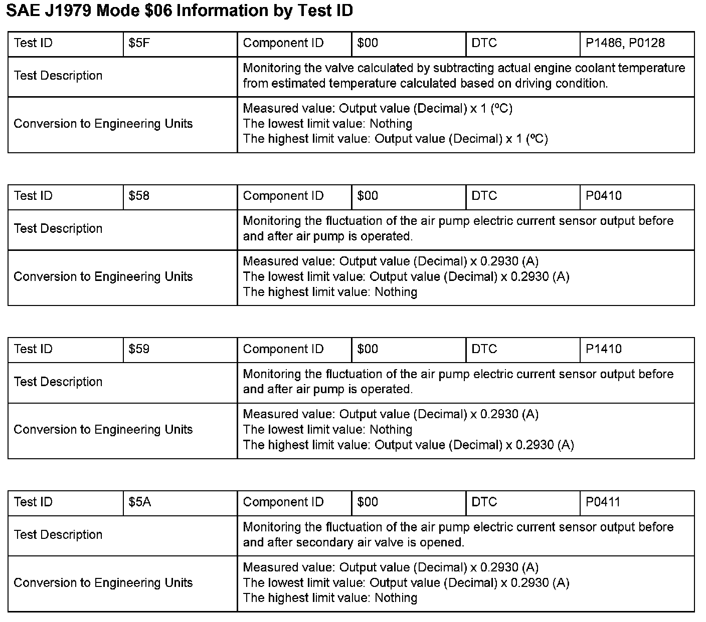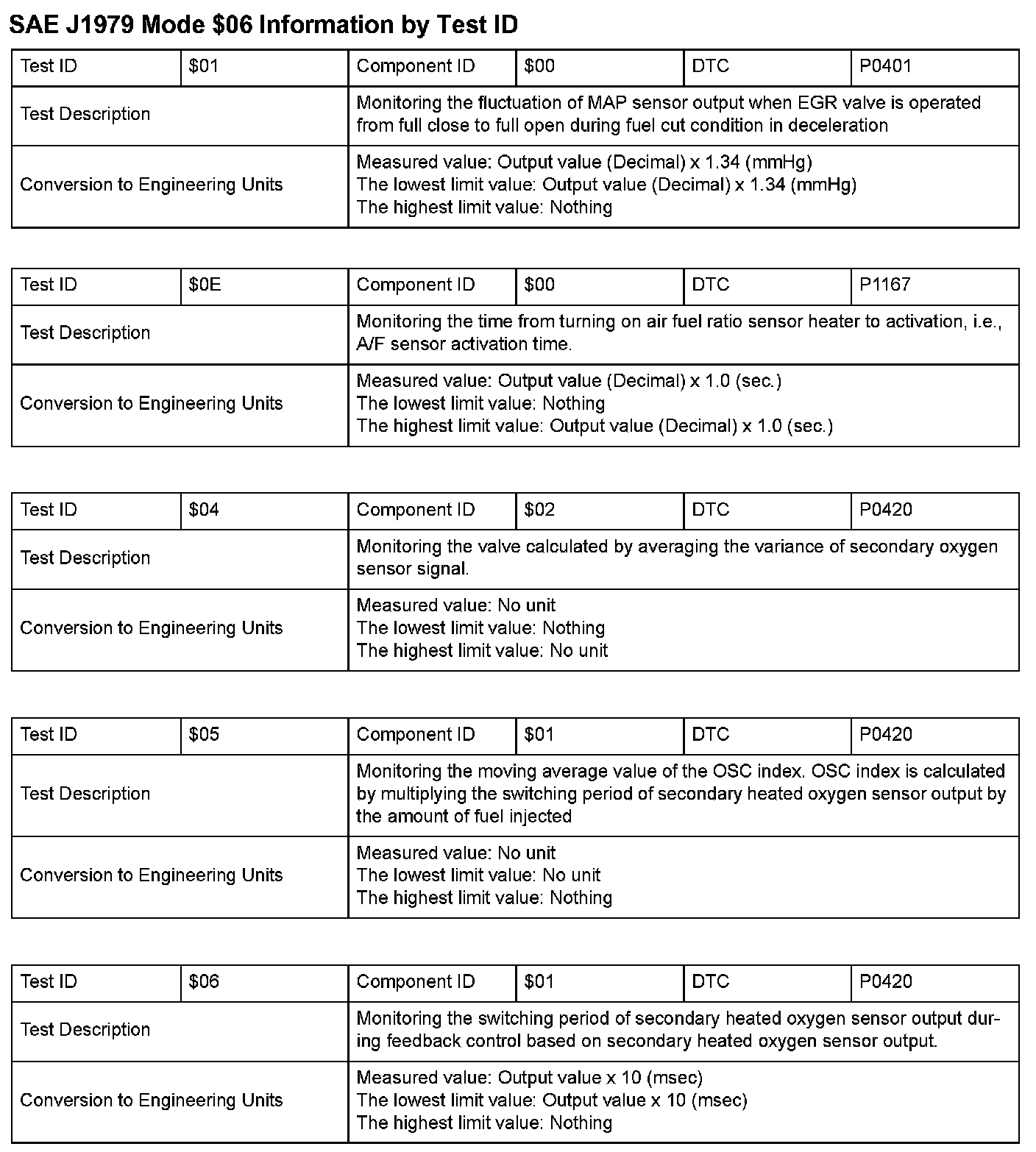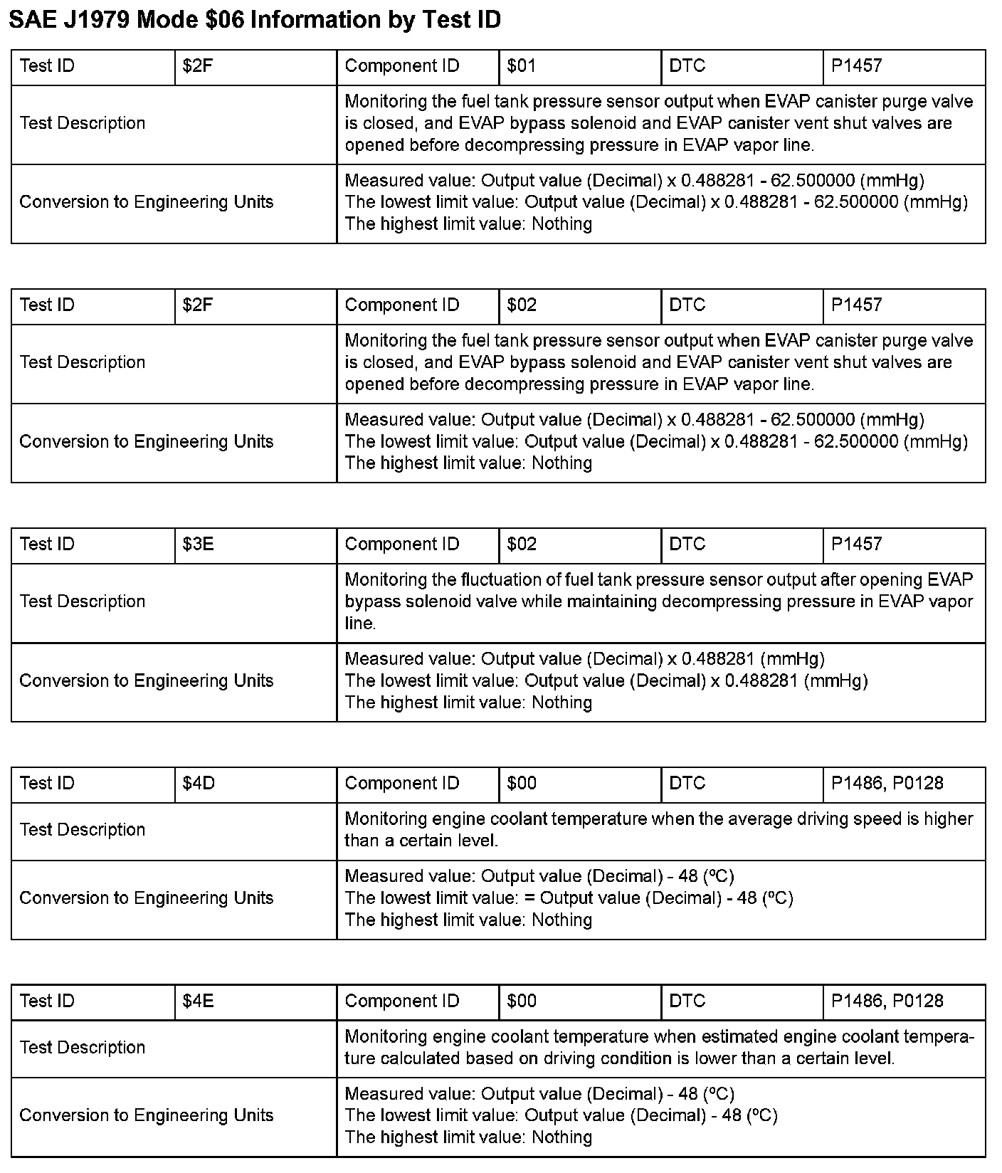 MODE $06 DATA CHARTSTest ID By Model (1 of 2):