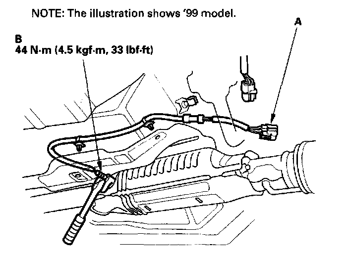 1. Disconnect the secondary HO2S 4P connector (A), then remove the secondary HO2S (B).