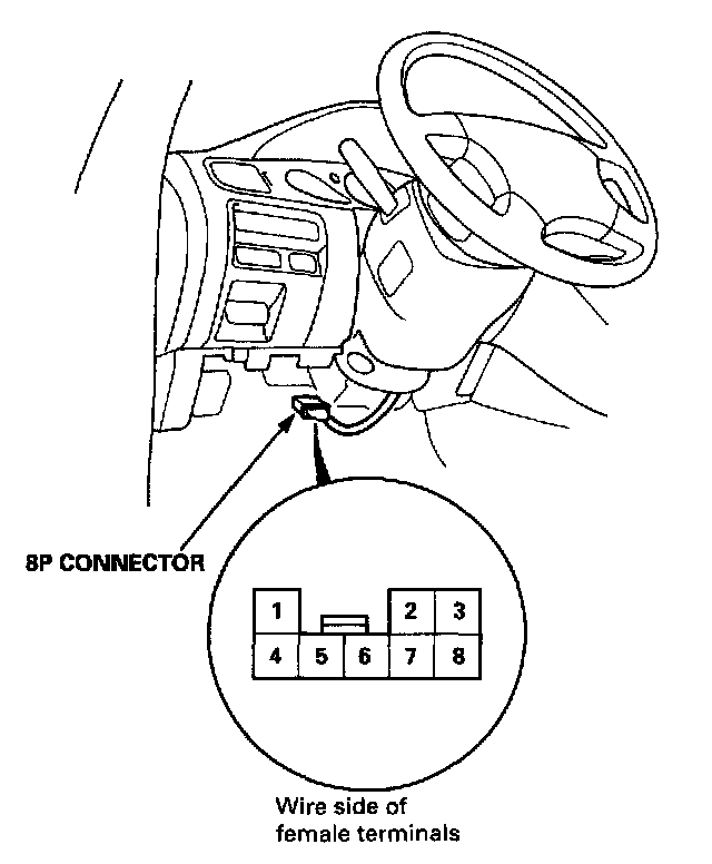 1. Remove the dashboard lower cover.2. Disconnect the 8P connector from the main wire harness.