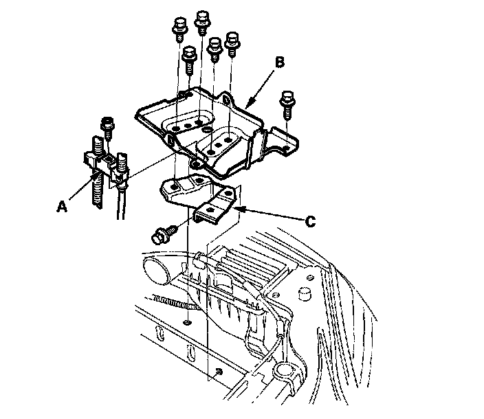 22. Remove the flange bolt (C), then remove the underhood fuse relay box.