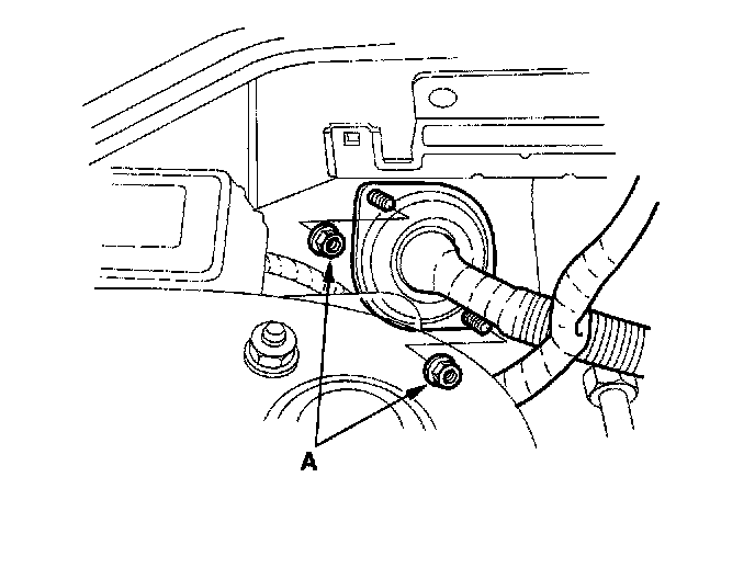 25. Remove the grommet mounting nuts (A), then pull out the engine wire harness.