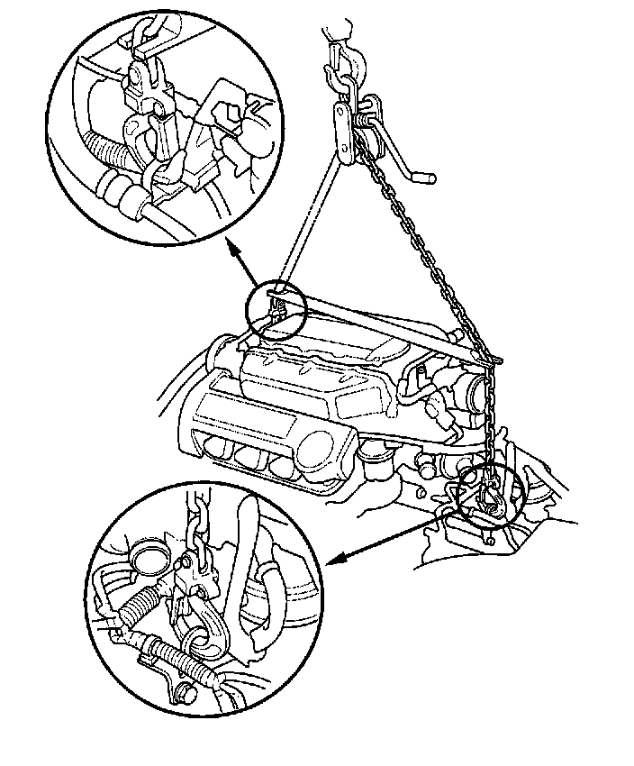 47. Attach the chain hoist to the engine as shown.