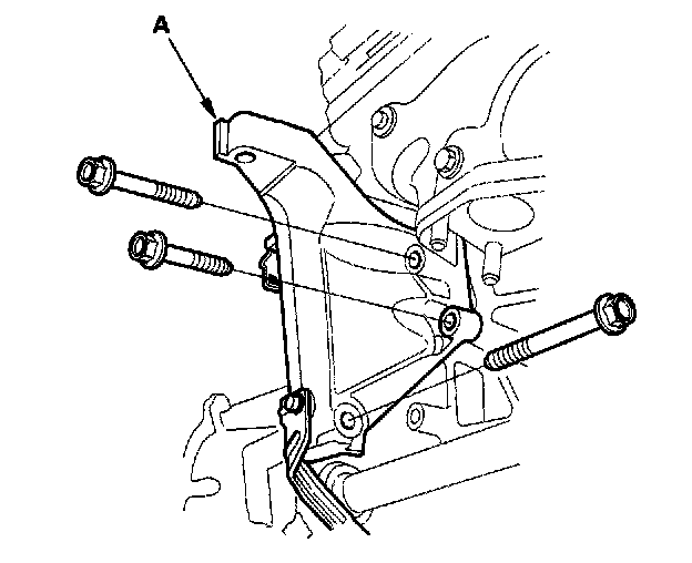61. Remove the rear mount bracket (A) (A/T).
