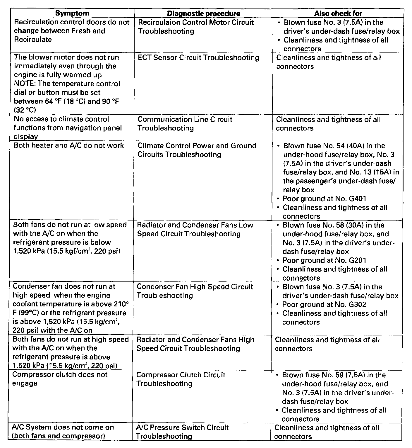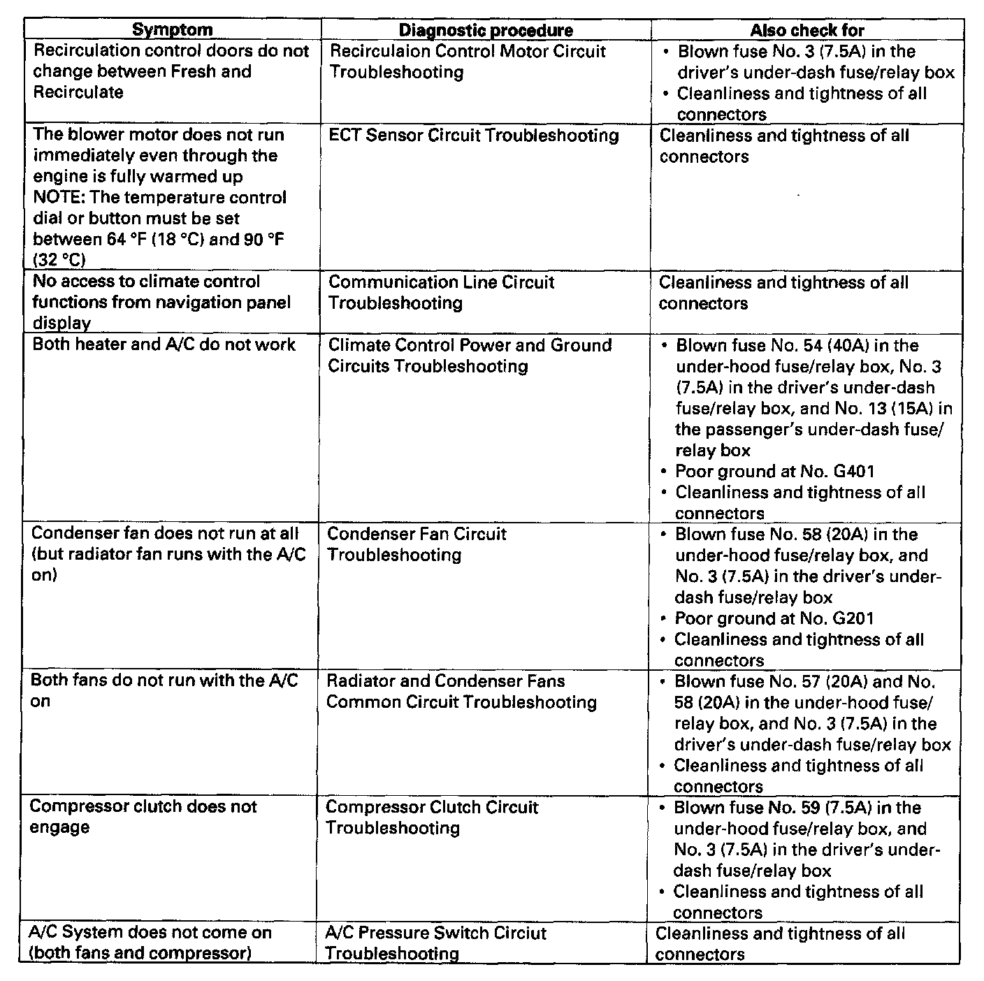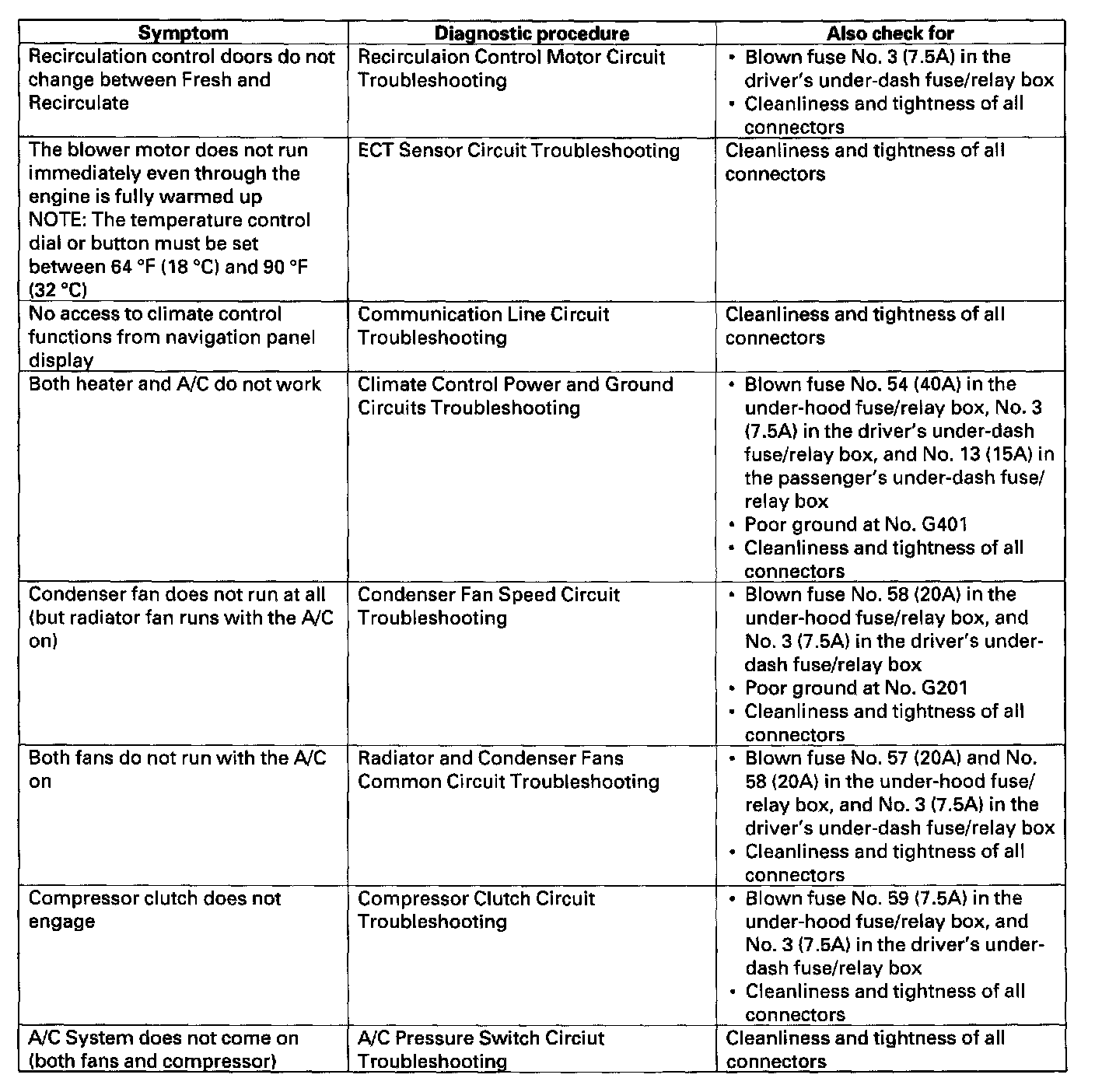 Symptom Troubleshooting Index (Type S A/T Model):