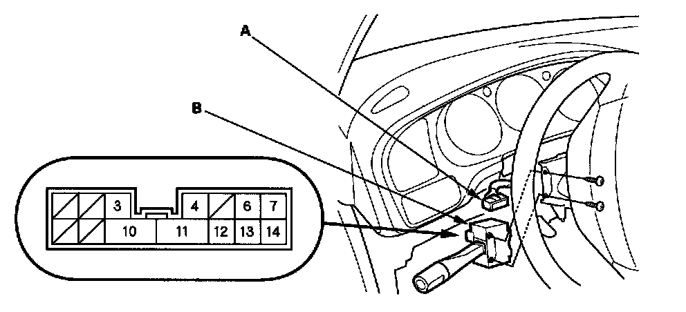 3. Disconnect the 14P connector (A) from the combination light switch (B).