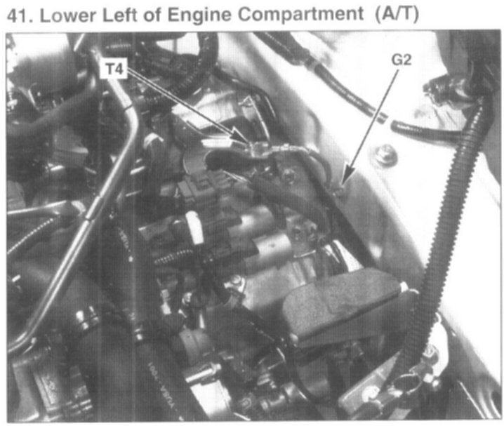 41. Lower Left of Engine Compartment (A/T):