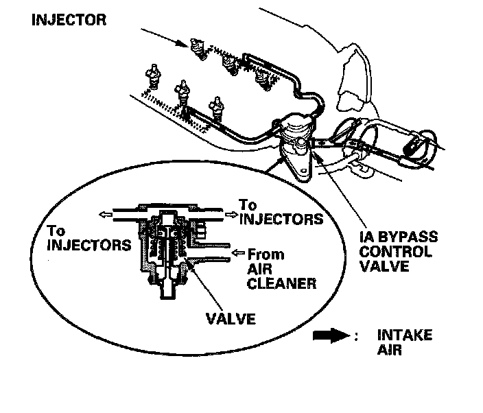 When the engine is running, the Intake Air (IA) Bypass control valve sends air to the injectors.