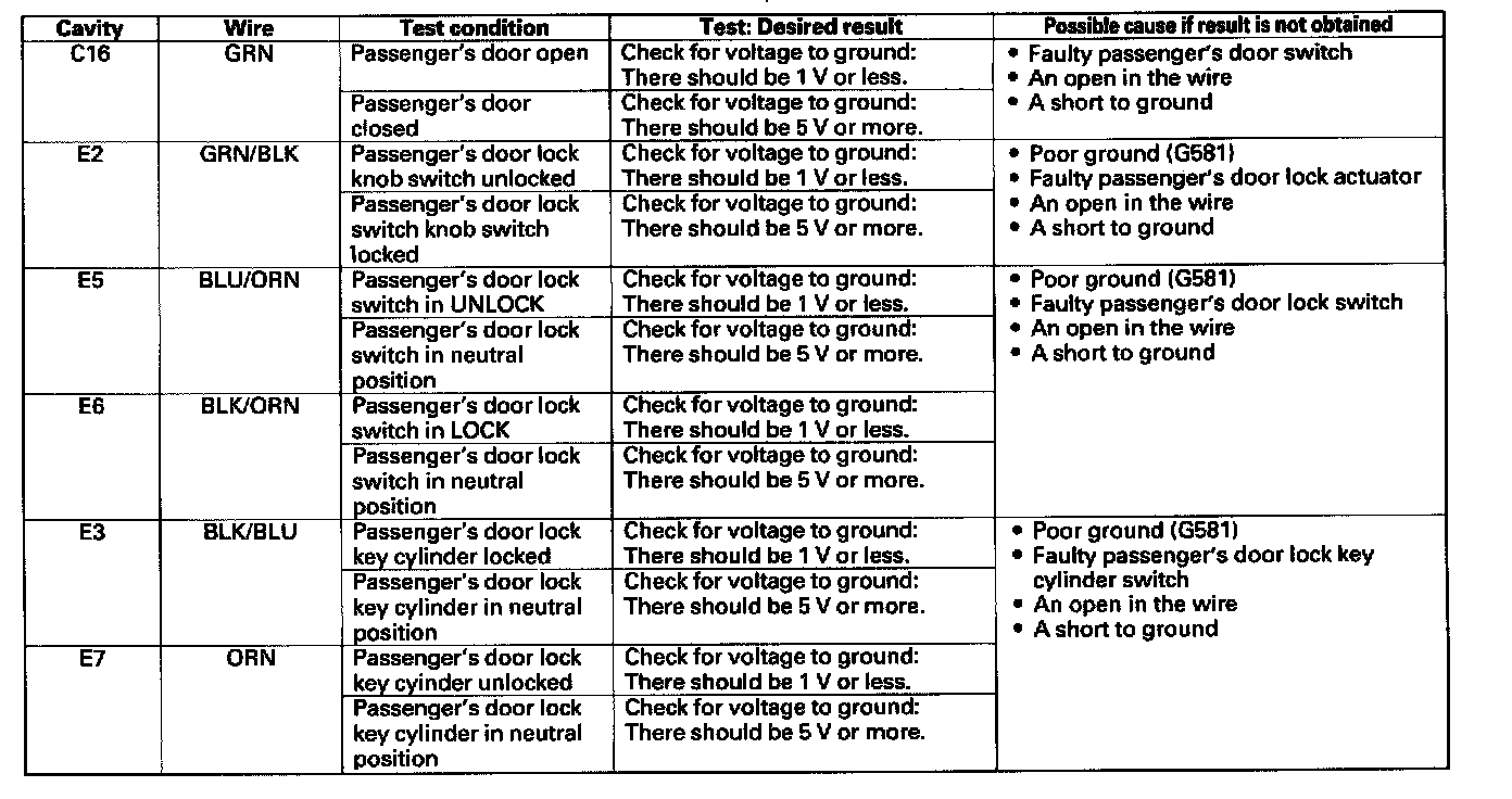 13. Reconnect the connector to the door multiplex control unit, make these input tests at the connector.