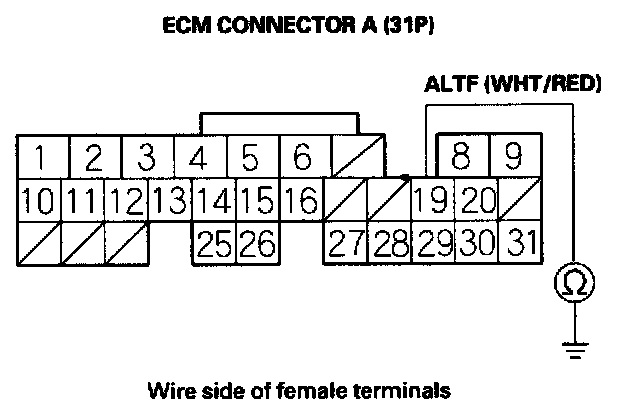15. Check for continuity between body ground and ECM connector terminal A19.
