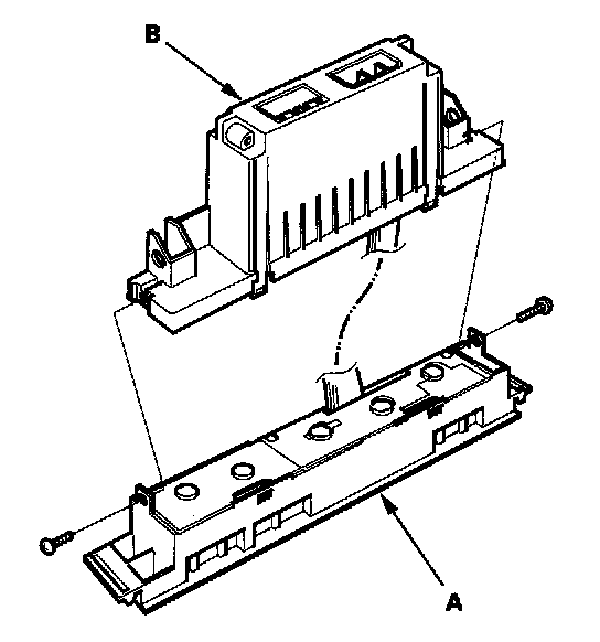 2. Remove the self-tapping screws, then carefully separate the climate control unit display (A) and control unit (B). Do not kink or pull on the wires between the display and the control unit. Do not touch the electronic components on the printed circuit board in the control unit.