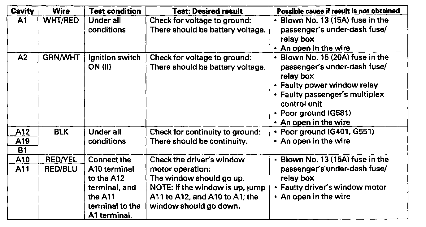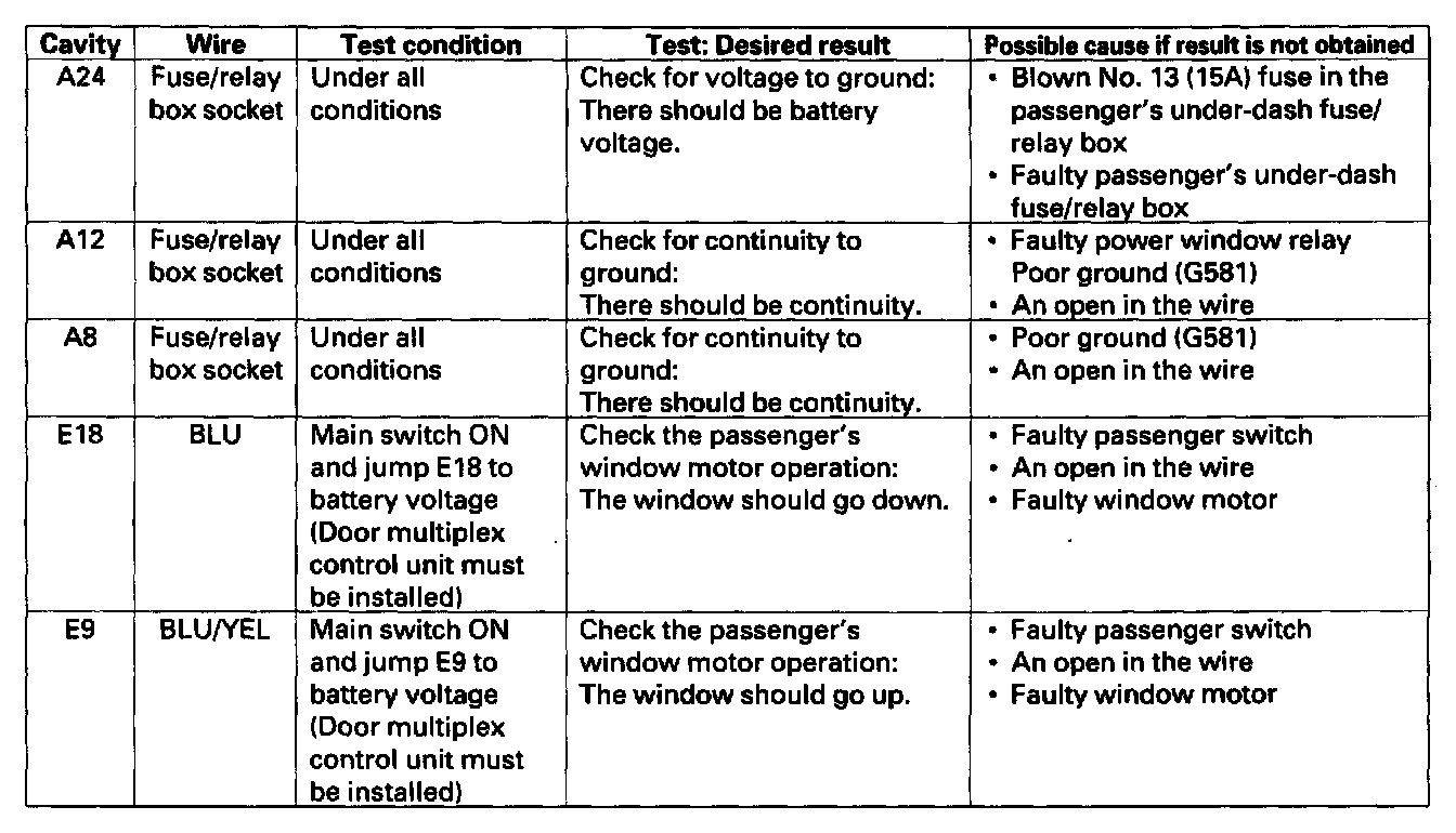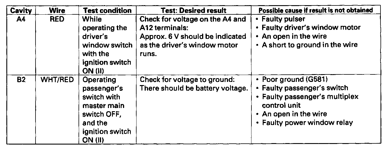 1. Before testing the power window control functions check the operation of other multiplex functions. If there are other functions that are in operative, troubleshoot the multiplex control system.