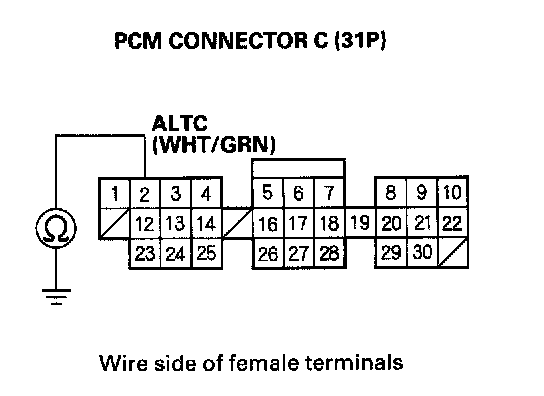 7. Check for continuity between the PCM connector terminal C2 and body ground.