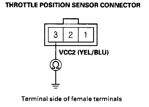 YES - Check for a short to ground between the No. 3 terminal of the TPS connector and ground. If the wire is OK, replace the PCM.