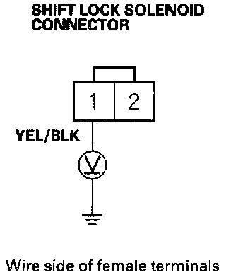 NOTE: Do not connect the No. 2 terminal to the battery positive terminal or you will damage the diode inside the shift lock solenoid.