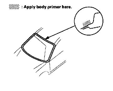 23. With a sponge, apply a light coat of body primer to the original adhesive remaining around the windshield opening flange, windshield, rear window, quarter glass. Let the body primer dry for at least 10 minutes.