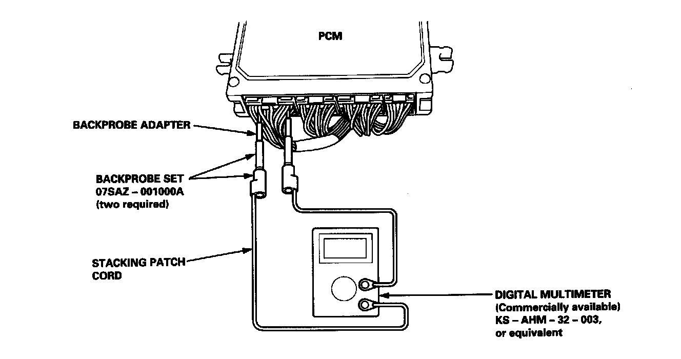 b. Set the digital multimeter to check throttle position sensor voltage between C27 (+) terminal and B20 (-) or B22 (-) terminal on the PCM.