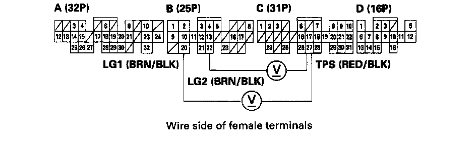 Throttle position sensor voltage represents the throttle opening. Monitor it with the Honda PGM Tester or as follows: