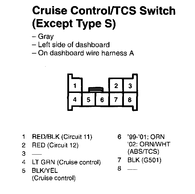 Cruise Control/TCS Switch (Except Type S):